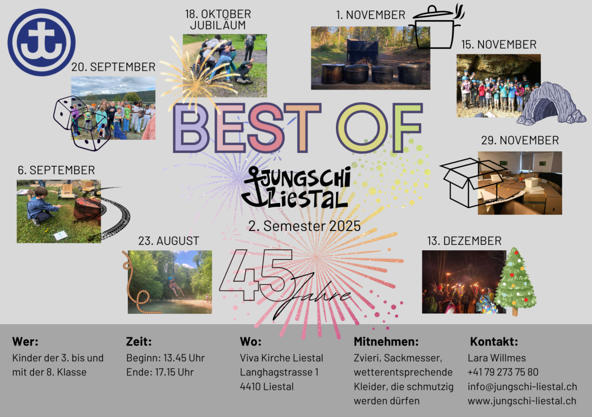 06. September 2025 13:45 - 17:15 Uhr | Jungschi Liestal 06. September weitere Infos |